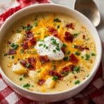 Keywords: loaded baked potato soup, creamy potato soup, comfort food soup, cheddar potato soup, easy potato soup