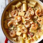 - Combine and Serve: Return the cooked shrimp and rigatoni to the skillet. Toss everything together to coat the pasta and shrimp evenly with the sauce. Serve immediately, garnished with chili flakes to taste for a bit of heat. Enjoy!