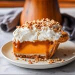 Milk Bar Hilly’s Pumpkin Caramel Pie is a decadent, layered pumpkin pie featuring a rich and creamy spiced pumpkin white chocolate ganache, a luscious salted caramel layer, a homemade buttery pie crust, fresh sweetened whipped cream, and a crunchy streusel topping. This dessert balances salty, sweet, creamy, and crunchy textures, making it an unforgettable centerpiece for Thanksgiving or any fall gathering.