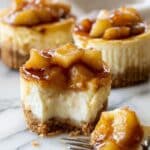 - Top and Serve: Just before serving, spoon the warm cinnamon apples onto each mini cheesecake and drizzle caramel sauce over the top. Serve chilled or slightly warmed for best flavor.