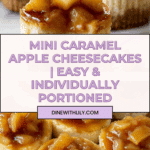 Keywords: mini cheesecake, caramel apple cheesecake, individual cheesecakes, cinnamon apples, easy cheesecake recipe, portable dessert, fall desserts