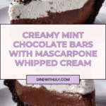These Mint Chocolate Bars with Mascarpone Whipped Cream combine a crisp chocolate cookie crust with a rich, mint-infused chocolate filling, all topped with a luscious mascarpone whipped cream and sprinkled with mint chocolate candies. Perfectly chilled and easy to slice, these bars offer a refreshing twist on classic chocolate desserts and are ideal for mint lovers and special occasions.