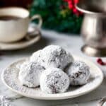 - Step 4: Scoop teaspoonfuls of the chilled mixture and shape them into round balls using your hands. Roll each ball in the powdered sugar to coat evenly.