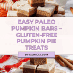 These Paleo Pumpkin Bars are a deliciously simple and healthy treat packed with classic pumpkin pie spice flavor. Made with almond and coconut flour, naturally sweetened with maple syrup and coconut sugar, and featuring creamy almond butter and pumpkin puree, these bars are gluten-free, paleo-friendly, and perfect for fall gatherings or anytime you crave pumpkin goodness.