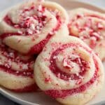 Keywords: peppermint swirl cookies, peppermint cookies, sugar cookies, holiday cookies, peppermint extract cookies, festive cookies, red and white cookies, Christmas cookies