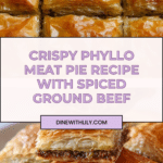 A savory and flaky Phyllo Meat Pie featuring a spiced ground beef filling layered between crisp phyllo dough sheets and baked to golden perfection. This Middle Eastern-inspired dish balances aromatic spices and rich textures, making it a satisfying meal for any occasion.