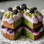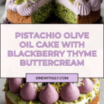 This Pistachio and Blackberry Olive Oil Cake is a delightful blend of nutty richness and fruity freshness. Soft pistachio-infused layers are paired with a vibrant blackberry buttercream, creating a beautiful and flavorful dessert perfect for any occasion.