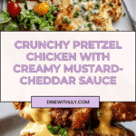 Keywords: Pretzel Chicken, Mustard-Cheddar Sauce, Baked Chicken, Crunchy Chicken Recipe, Easy Dinner, Chicken Breast, Cheddar Cheese Sauce