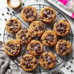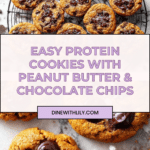 These Protein Cookies are a nutritious and delicious treat made with whey protein powder, peanut butter, and sugar-free sweetener, perfect for a high-protein snack or dessert that supports your fitness goals. They feature a soft, slightly underbaked texture topped with sugar-free dark chocolate chips and optional flaky sea salt for an added flavor punch.