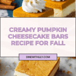 Keywords: pumpkin cheesecake bars, pumpkin dessert, fall dessert, cheesecake bars, pumpkin recipe