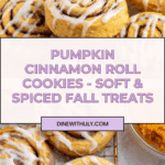 Keywords: pumpkin cookies, cinnamon roll cookies, fall desserts, pumpkin spice cookies, pumpkin cinnamon cookies, soft cookie recipe, holiday baking