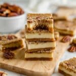 These Pumpkin Pecan Bars combine the best fall flavors of pumpkin pie, classic shortbread, and pecan pie into one decadent dessert. Featuring a buttery shortbread crust, a gooey pumpkin pecan filling with toffee bits for added crunch, these bars are perfect for holiday gatherings and cozy fall indulgences.
