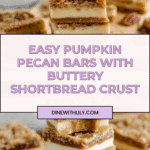 Keywords: pumpkin pecan bars, pumpkin dessert, fall dessert, pecan pie bars, shortbread crust, holiday dessert, pumpkin pie spice, toffee bits
