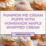 Keywords: pumpkin pie cream puffs, pumpkin dessert, cream puff recipe, fall desserts, pumpkin cream puffs, maple whipped cream, choux pastry, holiday dessert