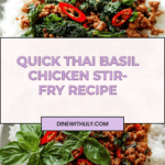 Quick Thai Basil Chicken is a flavorful and aromatic stir-fry that’s perfect for a weeknight dinner. Packed with savory, spicy, and slightly sweet notes, this dish comes together fast using ground chicken and fresh Thai basil. Serve it over steamed rice for a satisfying meal.