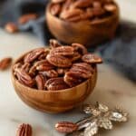 Store roasted pecans in an airtight container at room temperature for up to one week. For longer storage, freeze them in an airtight container or freezer bag for up to one year. When reheating, warm gently to restore crunch without burning.