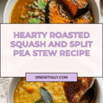 A hearty and flavorful Roasted Squash and Split Pea Stew combining tender simmered split peas with sweet, roasted winter squash and crunchy pepitas, enhanced with warm spices like turmeric, smoked paprika, and cumin. This comforting vegetarian stew is perfect for cool evenings and packed with nutritious ingredients.