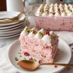 Rose Tiramisu is a fragrant and elegant twist on the classic Italian dessert, infused with the delicate flavors of rose syrup and rose water. This no-bake dessert features layers of rose milk-soaked ladyfinger cookies, creamy mascarpone, and whipped cream, beautifully garnished with edible rose buds and silvered pistachios, making it perfect for special occasions or a romantic treat.