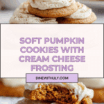 Keywords: pumpkin cookies, soft cookies, fall cookies, cream cheese frosting, no chill pumpkin cookies, cakey pumpkin cookies, easy pumpkin dessert