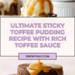 Classic British Sticky Toffee Pudding featuring moist date cake baked in individual ramekins and topped with a rich, homemade toffee sauce. Perfectly sweet, with a luscious, caramel-like sauce that enhances the warm, tender cake. Serve with whipped cream, ice cream, or a sprinkle of sea salt for a decadent dessert experience.