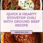 This Stovetop Chili with Ground Beef is a hearty and flavorful meal that combines tender ground beef, zesty diced tomatoes, and a perfect balance of spices. Ready in just 30 minutes, this comforting chili is perfect for busy days, offering rich, bold flavors and a thick, satisfying texture. It’s easy to make on the stovetop and serves as a delicious base for numerous toppings and sides, making it a versatile family favorite.
