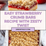 Delightful Strawberry Crumb Bars featuring a buttery shortbread base, a vibrant strawberry layer infused with citrus zest, and a crunchy cinnamon streusel topping. Perfectly baked to golden perfection, these bars balance sweet and tangy flavors with a satisfying crumbly texture.