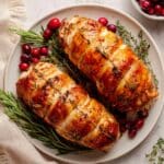 This Stuffed Turkey Breast recipe features a tender turkey breast rolled with a savory filling of sautéed mushrooms, spinach, pine nuts, fresh herbs, and creamy brie cheese. Baked to juicy perfection with herb-infused butter, this dish makes an elegant and flavorful centerpiece perfect for festive dinners or special occasions.