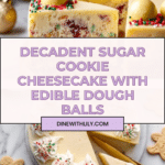 This Sugar Cookie Cheesecake is a delightful twist on a classic dessert, combining a buttery sugar cookie crust with creamy cheesecake and playful edible cookie dough balls. Finished with a smooth white chocolate ganache and festive sprinkles, it’s perfect for any celebration or holiday treat.
