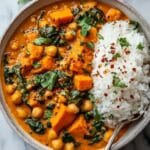 A hearty and flavorful Sweet Potato and Chickpea Curry that combines the creamy richness of coconut milk with aromatic spices. This vegetarian dish is easy to prepare, perfect for a comforting weeknight meal packed with nutritious ingredients like sweet potatoes, chickpeas, and warming spices.