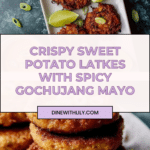 Keywords: sweet potato latkes, gochujang mayo, Korean fusion, appetizer, fried latkes, spicy mayo, gluten free option