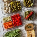 Keywords: relish tray, appetizer, marinated vegetables, pickled vegetables, olives, cheese, party platter, easy appetizer, no-cook appetizer
