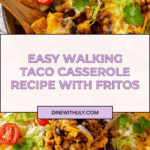 This Walking Taco Casserole is a fun and delicious twist on the classic walking tacos popular in the Midwest. Combining seasoned ground beef, black beans, corn, and melted cheddar cheese topped with crunchy Fritos corn chips, this one-pan casserole is easy to make and perfect for Taco Tuesday or casual gatherings. Versatile and gluten-free, it can be customized with your favorite taco toppings and spice levels, making it a crowd-pleaser that’s ready in about 40 minutes.