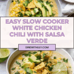 Keywords: white chicken chili, salsa verde chili, slow cooker chicken chili, healthy chicken chili, cannellini bean chili